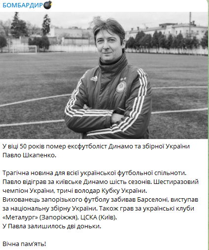 Футбольные сообщества Украины опечалило известие о смерти Павла Шкапенко, бывшего полузащитника киевского "Динамо" и участника сборной Украины. В декабре прошлого года ему только исполнилось 50 лет.