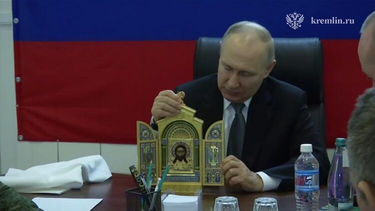 На одном из роликов, где Путин в Херсонской области дарит икону российским военным, слышна его фраза: "Сейчас вот Пасха будет, да?"