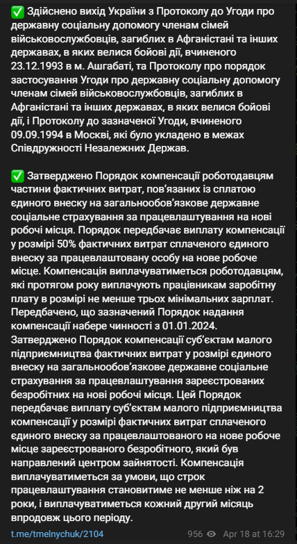 Об этом сообщает представитель Кабмина в Верховной раде Тарас Мельничук в своем телеграм-канале.