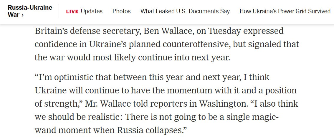Министр обороны Великобритании Бен Уоллес выразил уверенность в запланированном контрнаступлении Украины. Но дал понять, что война, скорее всего, продолжится и в следующем году.