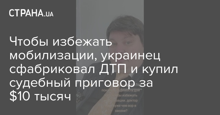 Украинец призывного возраста, чтобы избежать мобилизации, сфабриковал ДТП и организовал в суде обвинительный приговор против себя в виде условного срока в три года.