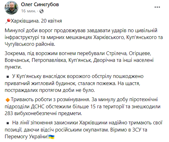 Тем временем война в Украине продолжается уже 421-й день. Мы следим за новостями 20 апреля в своем онлайне.