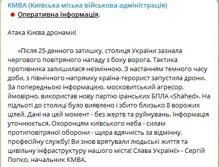 07.00 Ночью РФ атаковала из беспилотников Киев.