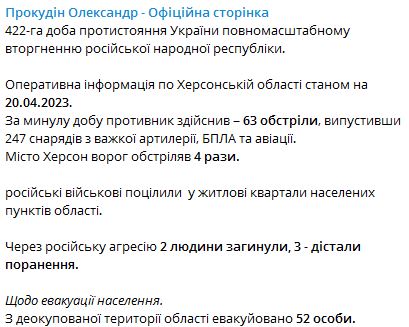 Город Херсон враг обстрелял 4 раза. Из-за российской агрессии 2 человека погибли, 3 - получили ранения.