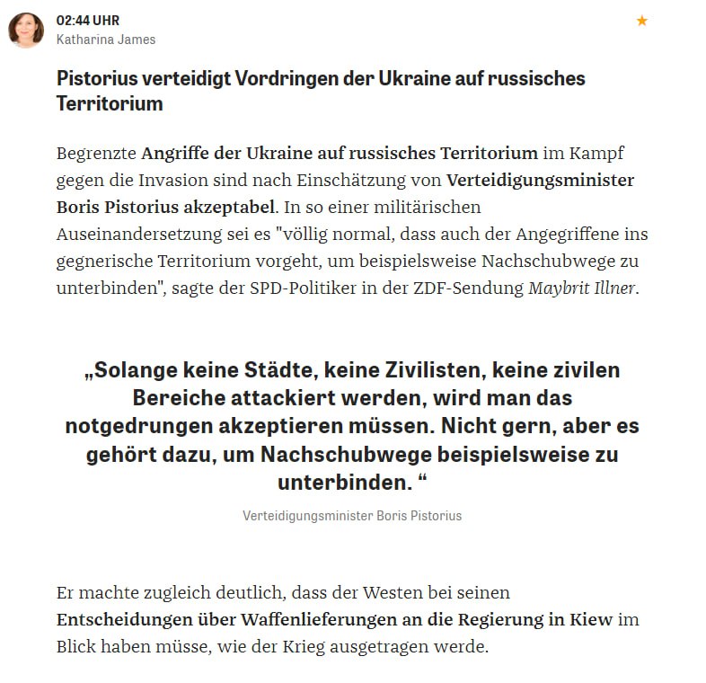 08.05 Украину в НАТО могут принять только после окончания войны, заявил министр обороны Германии Борис Писториус.