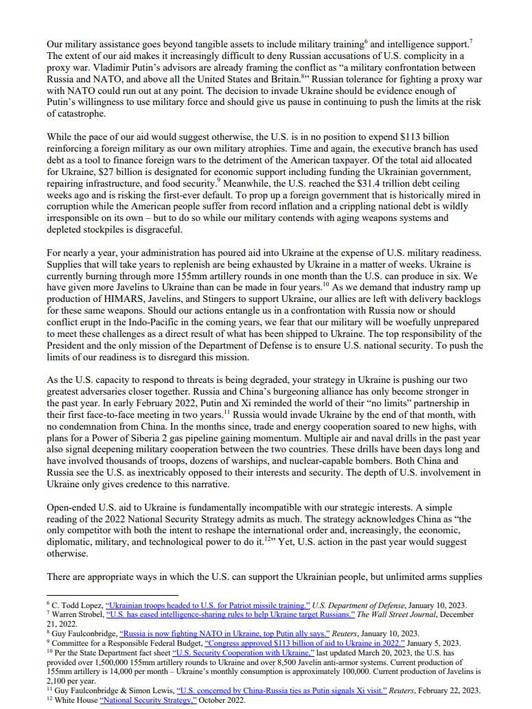В Конгрессе США группа из 19 республиканцев подготовила совместное письмо к президенту США Джо Байдену, в котором призвала прекратить помощь Украине в таком формате, как это было до сих пор.