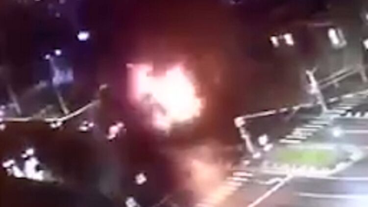 На видео видно, как дорожное покрытие на трех полосах движения проезжей части вырывает и подбрасывает на значительную высоту.