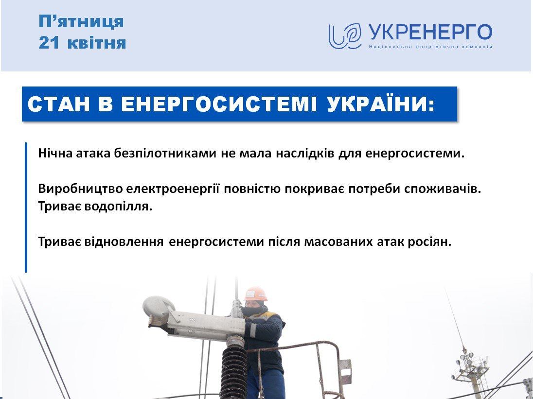 Энергосистема Украины не пострадала в результате ночной атаки "Шахидами".