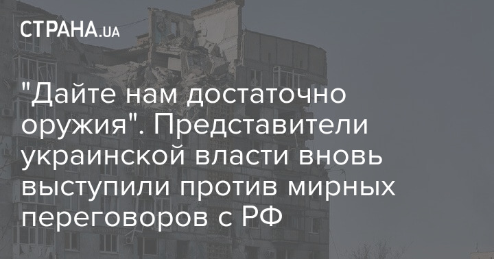 "Дайте нам достаточно оружия". Представители украинской власти вновь выступили против мирных переговоров с РФ