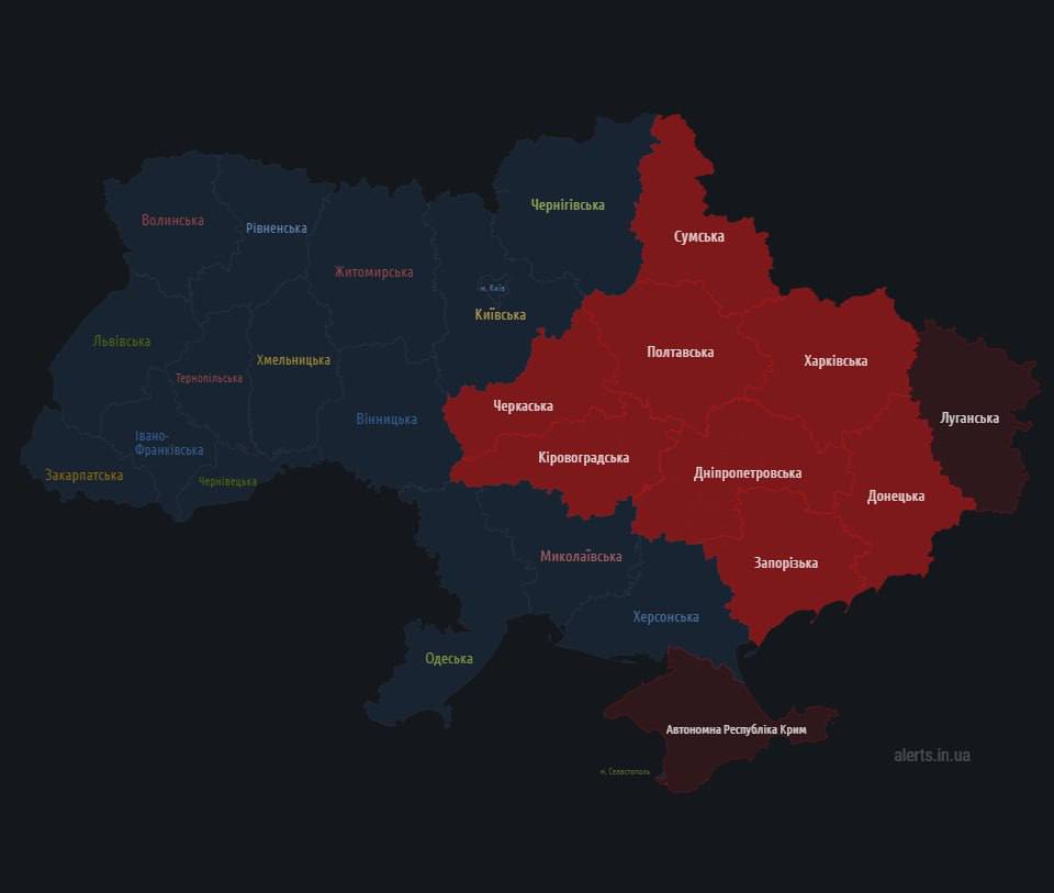 06.40 Карта тревог на сейчас.