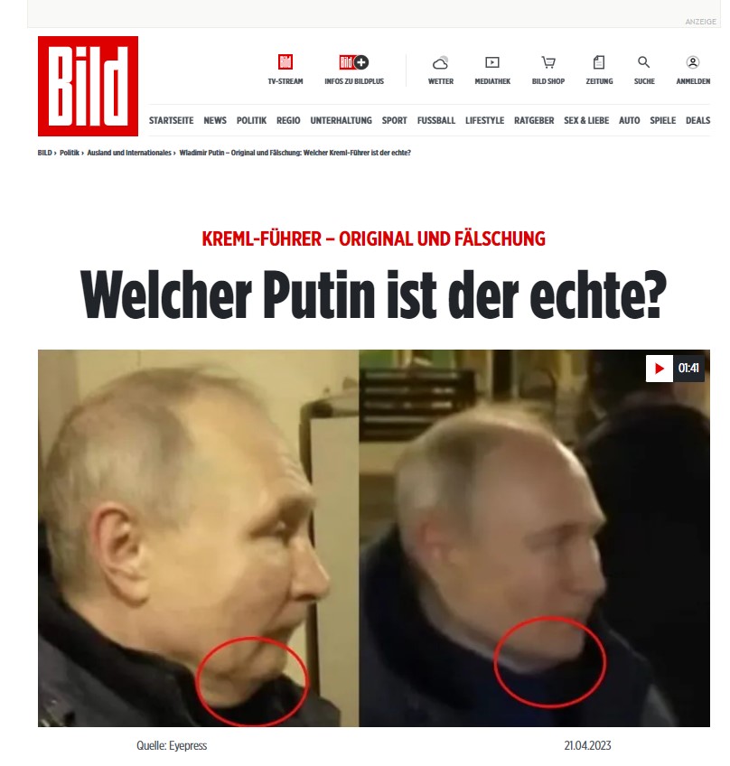 Отметим, на днях немецкое издание Bild написало, что Владимир Путин может использовать двойников, отправляя их вместо себя на различные мероприятия.
