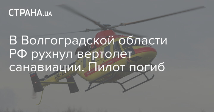 В Волгоградской области РФ потерпел крушение вертолет санавиации. Пилот погиб.