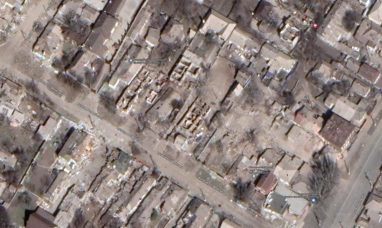 Теперь пользователи могут увидеть город после российских обстрелов. На фото видны значительные разрушения зданий, многие дома уничтожены до основания.
