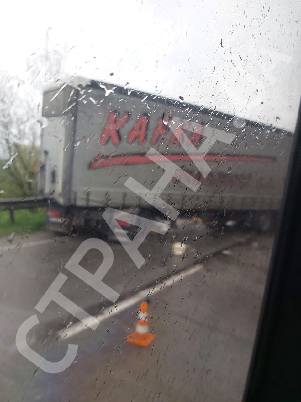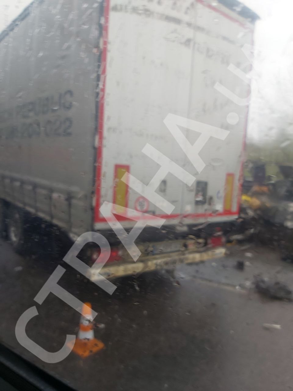 На трассе Ровно-Тернополь образовалась пробка в несколько километров из-за аварии. Фура столкнулась с микроавтобусом Мерседес Sprinter.