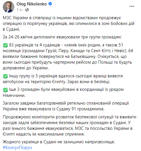 Из охваченного войной Судана за последние дни вывезли более 80 украинцев - МИД