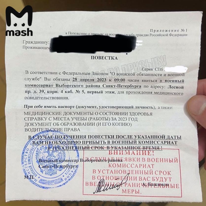 В Петербурге срочники стали получать повестки с предупреждением об ограничительных мерах в случае игнорирования призыва.