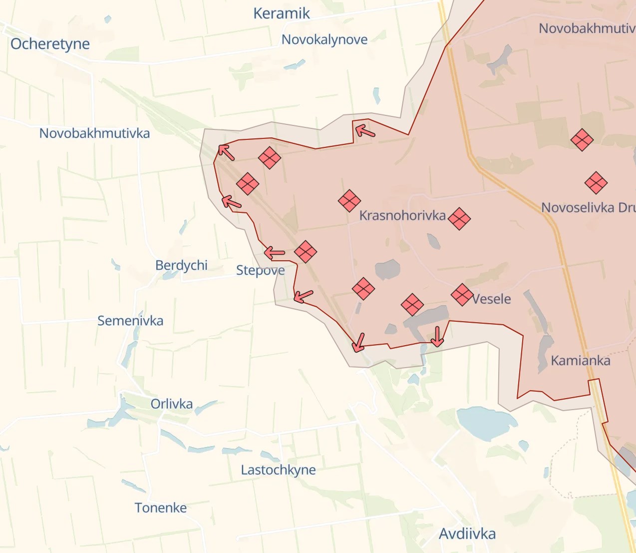 При этом в утренней сводке Института изучения войны (США) говорится, что российские войска  имели продвижение к северо-западу от Степного. Это чуть южнее Новобахмутовки.