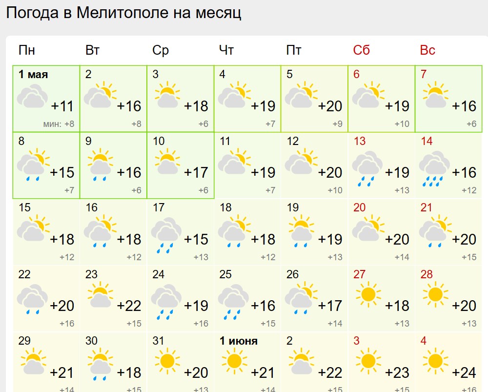 В Харькове, следует из прогноза, осадки в разной степени интенсивности ожидаются большую часть месяца. Капать будет до 11 мая, ливни — 17-18-го. Днем также в среднем около +15.