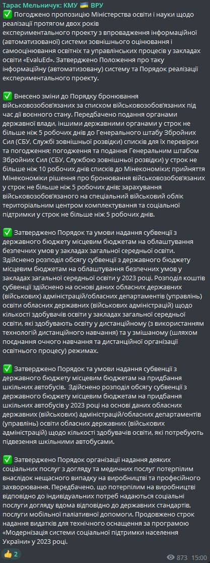 Об этом сообщает представитель правительства в Верховной Раде Украины Тарас Мельничук.