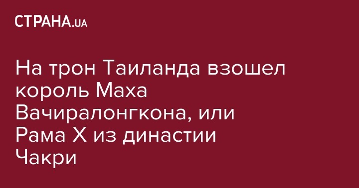 На трон Таиланда взошел король Маха Вачиралонгкона, или Рама X из династии Чакри
