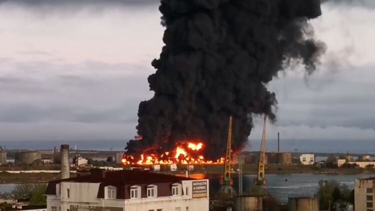 Назначенные Россией "власти" Севастополя утверждают, что нефтебазу атаковал украинский беспилотник. Киев этого не подтверждал.
