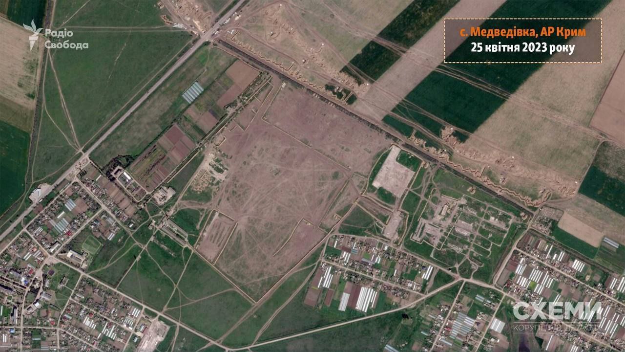 Также со спутника видно, что в Медведевке появились новые окопы.