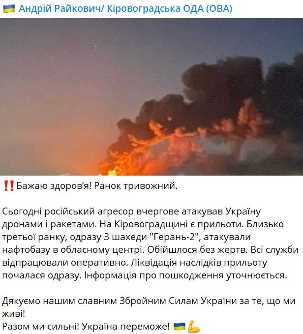 Последствия атаки нефтебазы. Фото: t.me/kirovogradskaODA