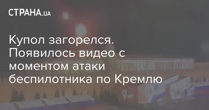 Появилось видео с моментом атаки беспилотника по Кремлю. Судя по видео, он был сбит прямо около купола.