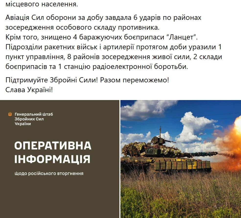 За сутки противник нанес десять ракетных ударов по городам Краматорск и Запорожье, также было 75 авиационных ударов.