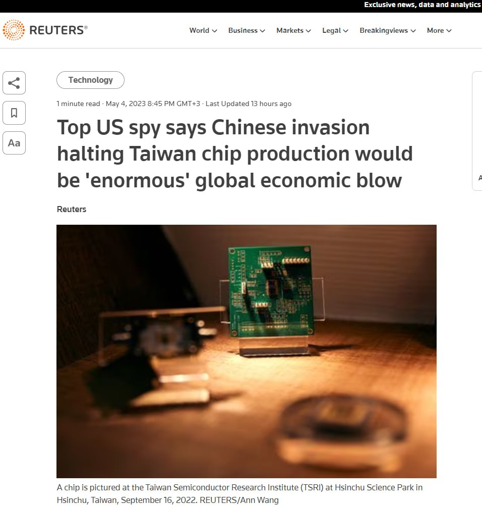 Директор национальной разведки США Аврил Хейнс, выступая перед сенатским комитетом по вооруженным силам заявила, что передовые полупроводниковые микросхемы производства Taiwan Semiconductor Manufacturing Company Ltd используются в 90 процентах "почти всех категорий электронных устройств по всему миру".