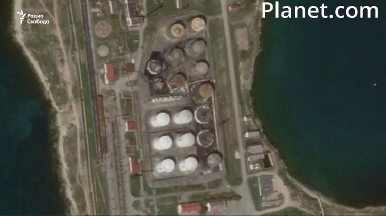 Телеграм-каналы публикуют спутниковые снимки нефтебазы под Севастополем до удара и после.