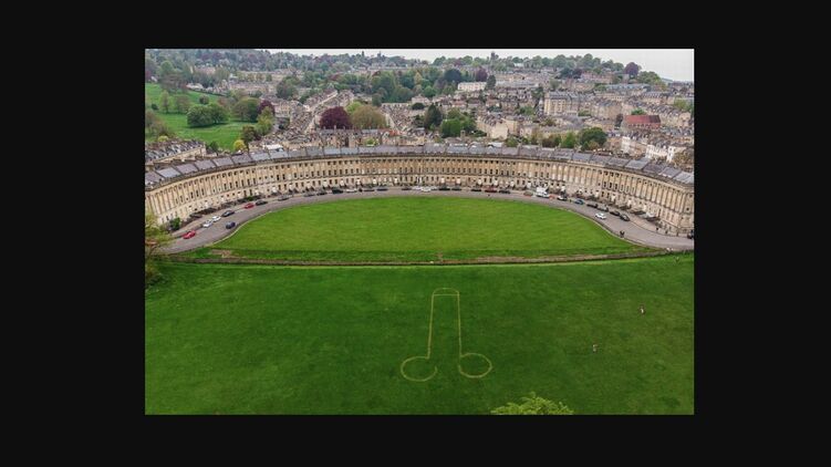 Гигантский фаллический символ был выкошен на лужайке Королевского полумесяца за одну ночь. Утром в четверг, 4 мая, жители Бата были потрясены, обнаружив на территории лужайки Бата девятиметровый символ в форме гигантского пениса.