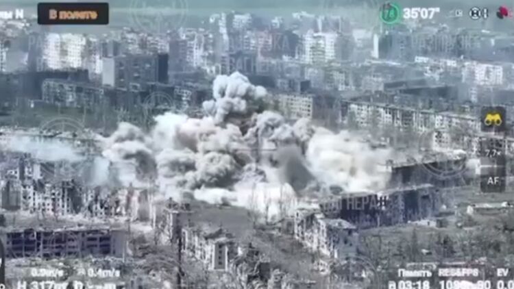 В Бахмуте гремят мощные взрывы. Скриншот видео