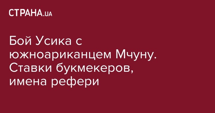Напомним, чемпионский бой между Усиком и Мчуну состоится 17 декабря в Ингвулде, штат Калифорния. По мнению букмекеров, украинский боксер является бесспорным фаворитом поединка.