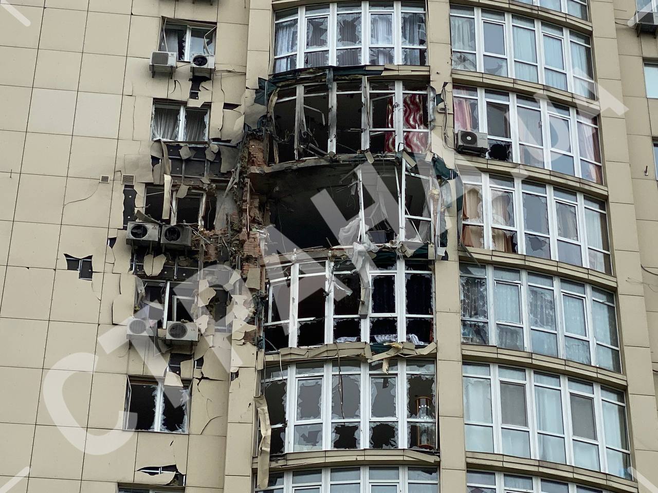 07.55 Видео последствий ночного удара по Киеву. Поврежден многоэтажный жилой дом.