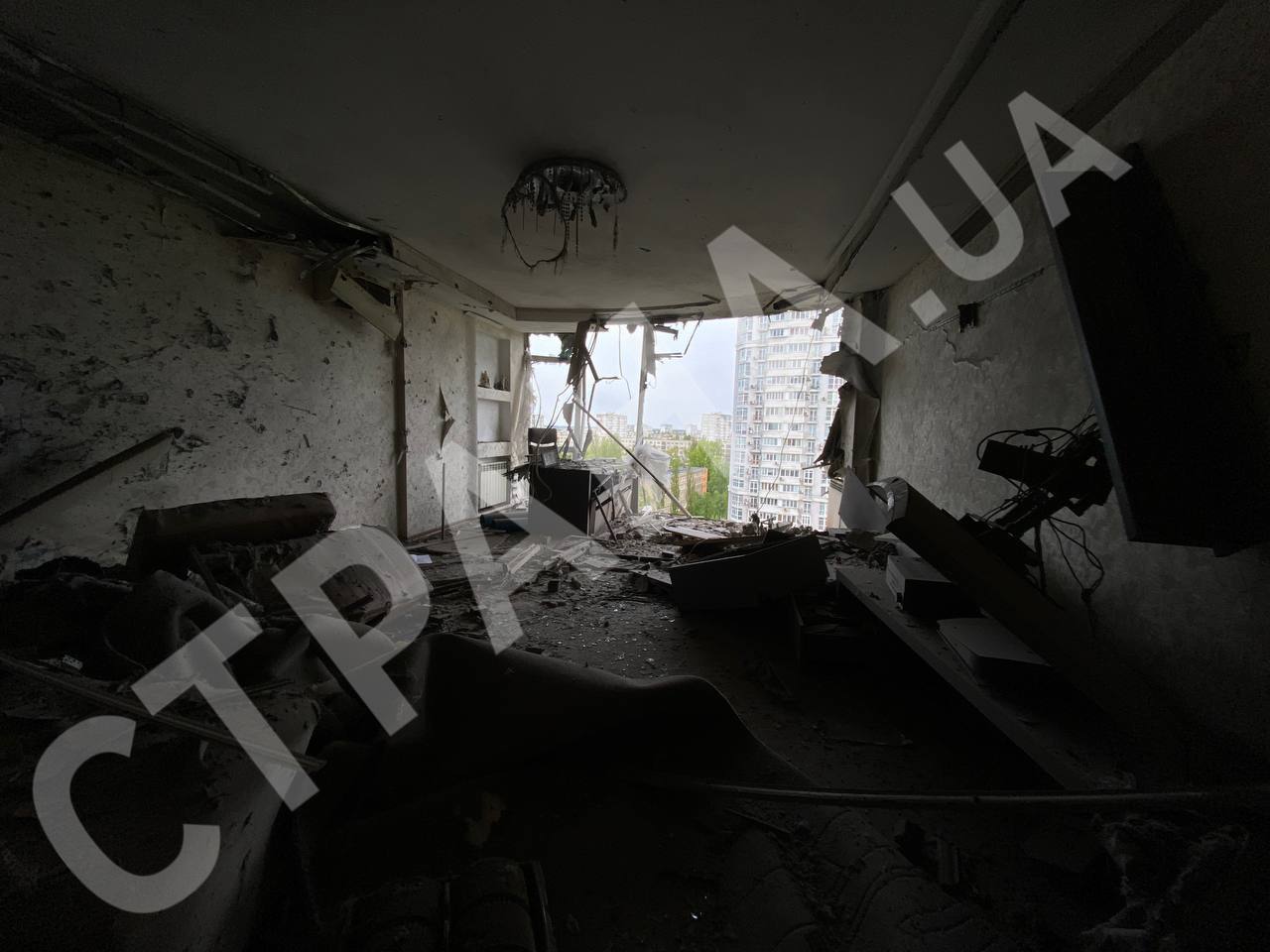 09.35 Вот так сейчас выглядит дом и квартира в Святошинском районе Киева, которые пострадали от ночного удара.