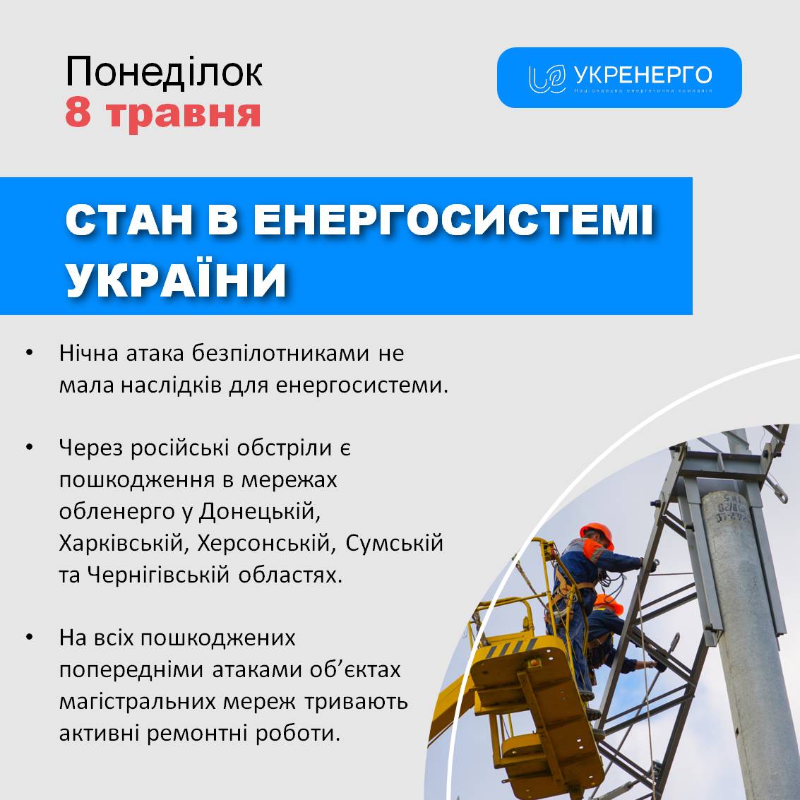 Тем не менее, из-за обстрелов повреждены сети облэнерго в прифронтовых районах - в Донецкой, Харьковской, Херсонской, Сумской и Черниговской областях.