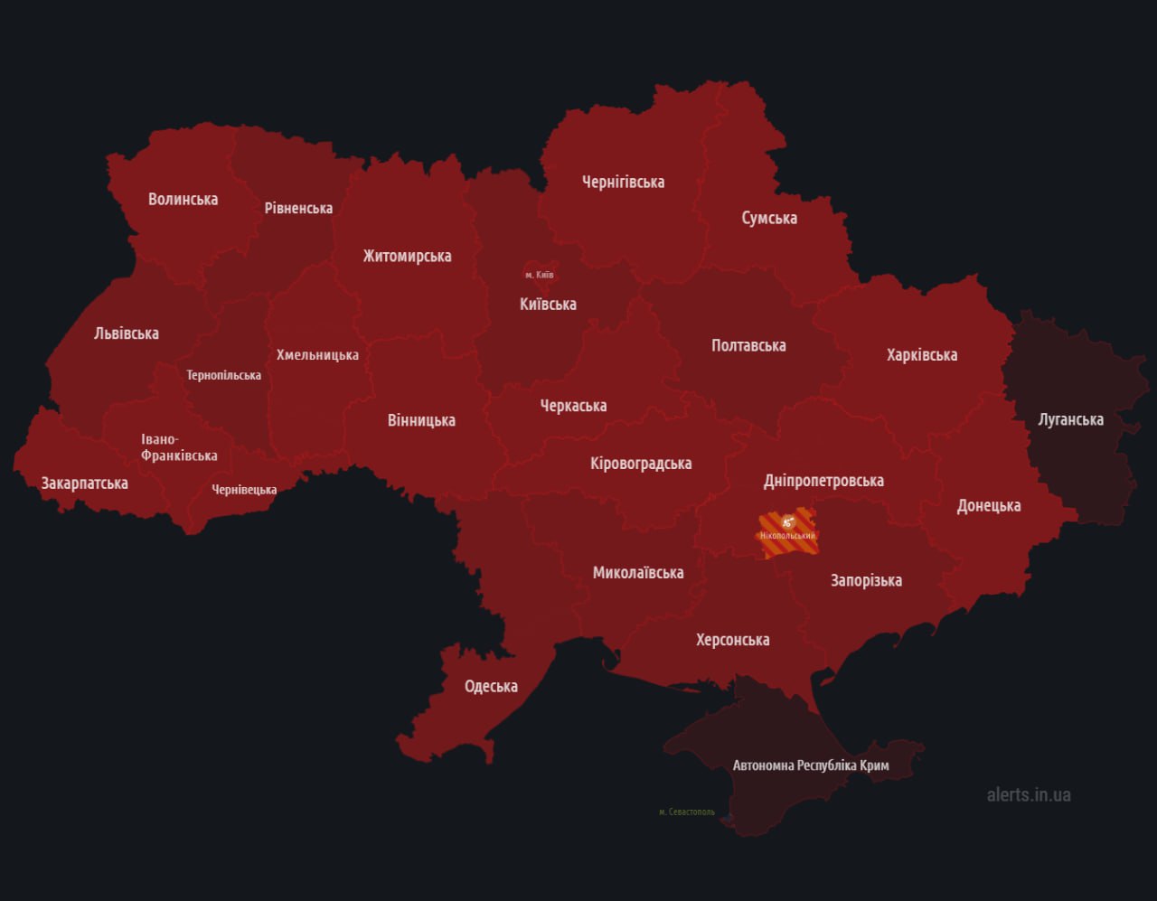 21.52 Воздушная тревога уже в четырех областях. К ним прибавилась Полтавская.