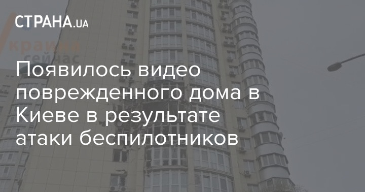 Появилось видео поврежденного дома в Киеве в результате атаки беспилотников