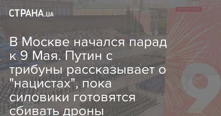 В Москве начался парад к 9 Мая. Путин с трибуны рассказывает о "нацистах", пока силовики готовятся сбивать дроны
