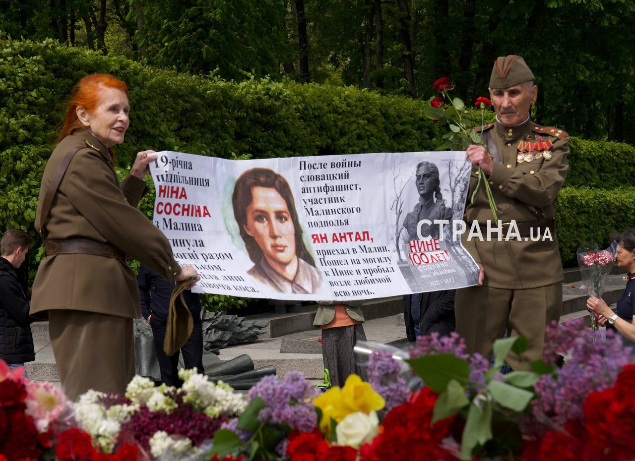 Киевляне тем временем несли цветы на Аллею славы в Киеве.