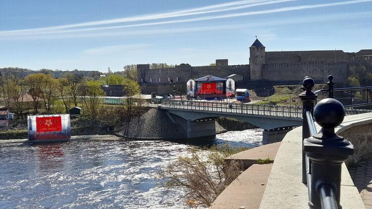 Жители российского города Ивангорода Ленинградской области, расположенного на границе с Эстонией и отделенного от ближайшего эстонского города Нарва неширокой рекой Нарова, установили на своем берегу большие экраны. На них демонстрировался праздничный концерт в честь Дня Победы.