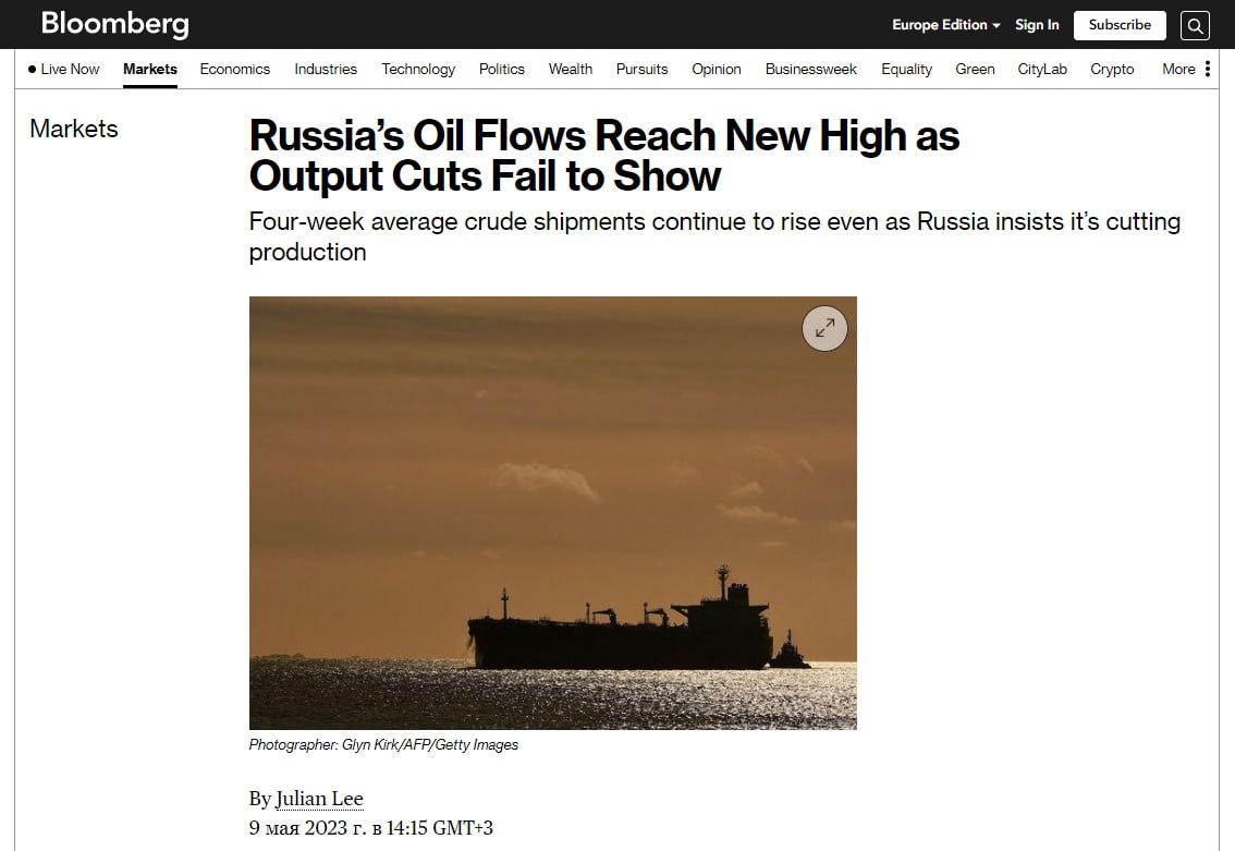 При этом доходы Москвы от продажи нефти сократились, упав в апреле до всего лишь трети прошлогоднего уровня из-за санкций и ценовых ограничений на ее экспорт.