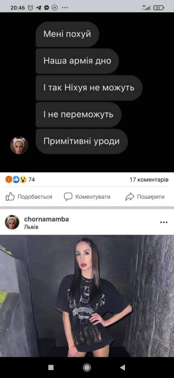 "Если я это писала, потому что я не уверена (доказать это сейчас будет практически невозможно), но конкретно перед ВСУ я извиняюсь. Это совершенно искренние извинения, когда я чувствую за собой вину, когда я действительно неправа. За это действительно извиняюсь потому, что это неправильно. Неважно, было ли это на эмоциях, или это был стресс", - заявила она.