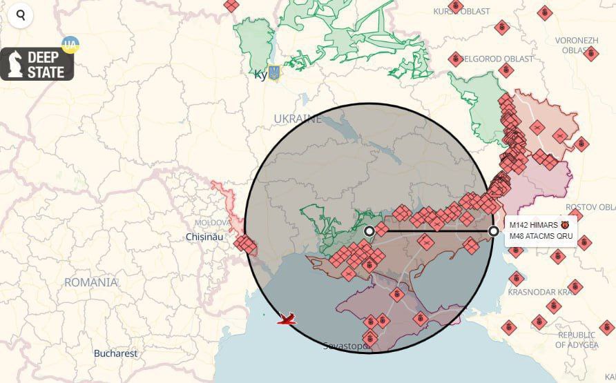 Этой дальности хватит, чтоб от линии фронта добить до Крыма, включая базу Черноморского флота РФ в Севастополе и Крымский мост.