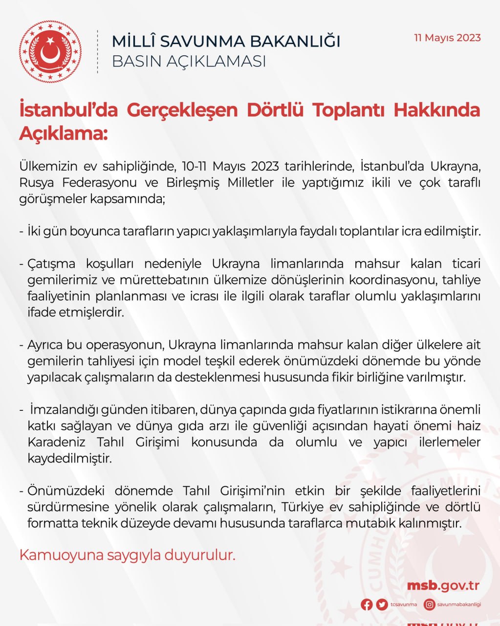 Напомним, переговоры о продлении "зерновой сделки" начались в Стамбуле в среду, 10 мая. В них принимают участие заместители министров обороны Турции, России и Украины, а также представители ООН.
