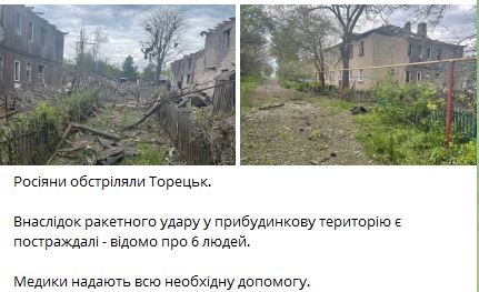 В четверг, 11 мая, россияне обстреляли ракетами Торецк в Донецкой области.