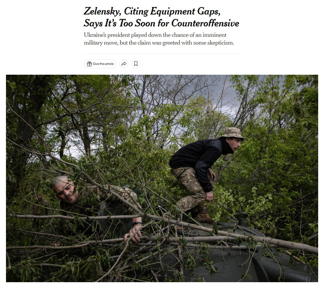 The New York Times проанализировала слова Зеленского о том, что контрнаступление могут отложить