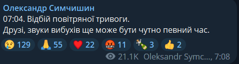Мэр Хмельницкого Александр Симчишин заявлял, что взрывы будут слышны и после отбоя воздушной тревоги.