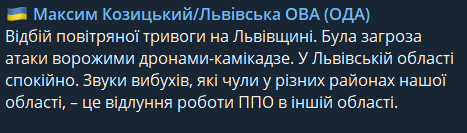 Информация о взрывах во Львовской области не подтвердилась. По данным областной военной администрации, звуки взрывов, которые слышали в области - это работа ПВО в соседних регионах.